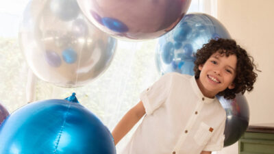 Essa composição com balões flutuantes das linhas Metallic Balloons e Metalizados combina muito bem com aquele espaço reservado para as fotos! Simples de reproduzir em casa, sem pesar visualmente, pode ser adaptado para diversas comemorações