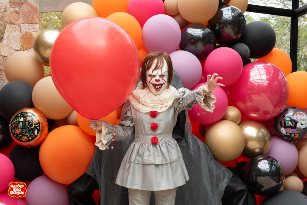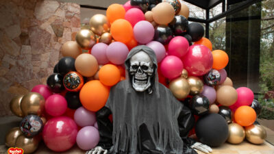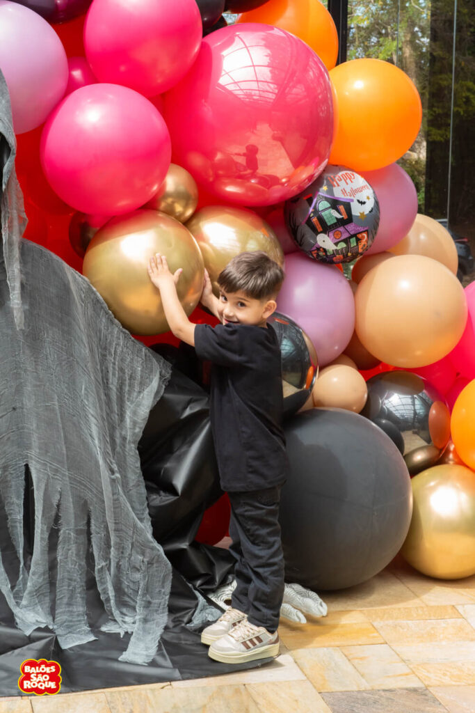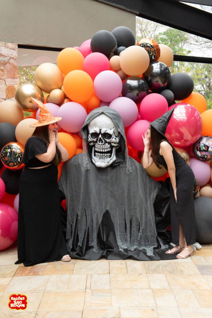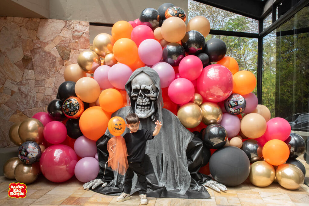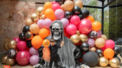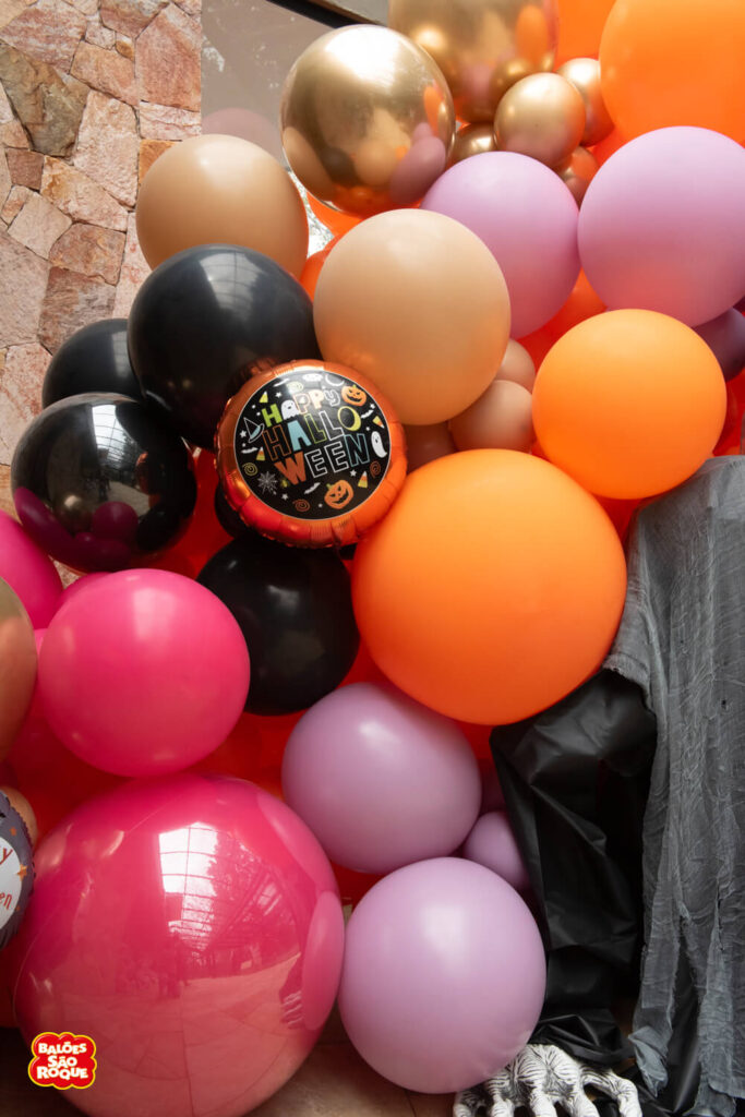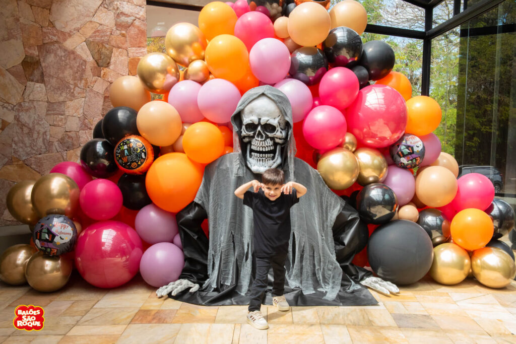 O mural orgânico, criado com a combinação dos Lisos Redondos, Metallic Balloons, Uniq, Balão Bolha e Metalizados Redondos, forma um cenário impactante, que une texturas e contrastes para transformar o ambiente em uma verdadeira experiência visual da data mais assustadora do ano.