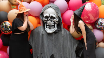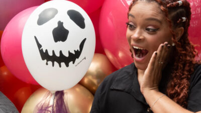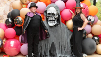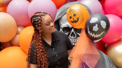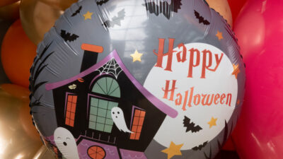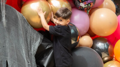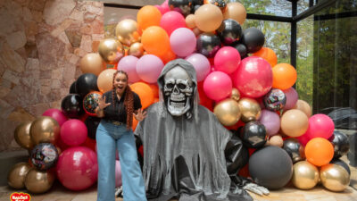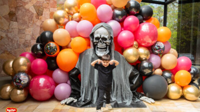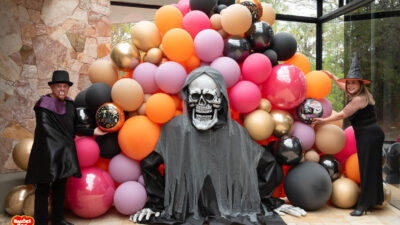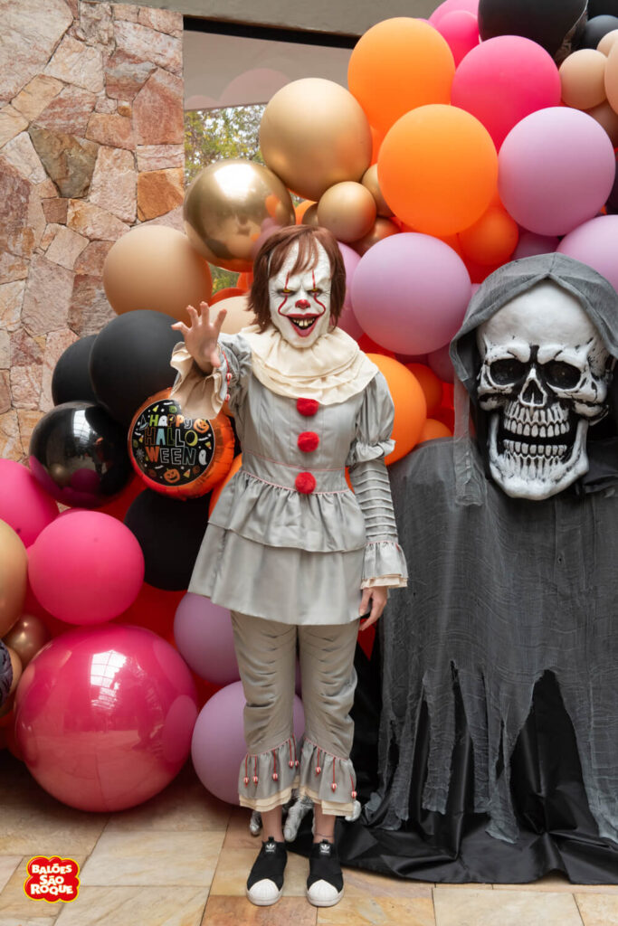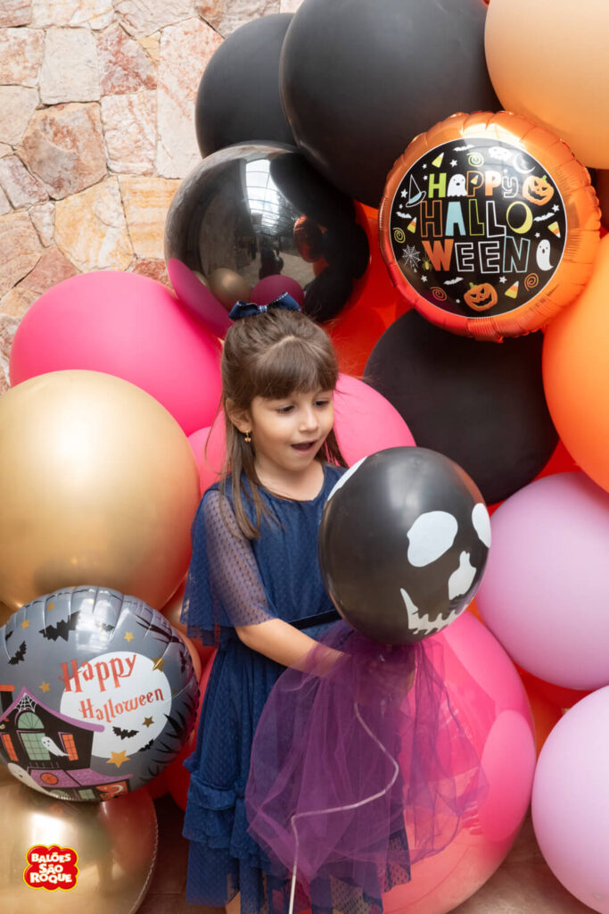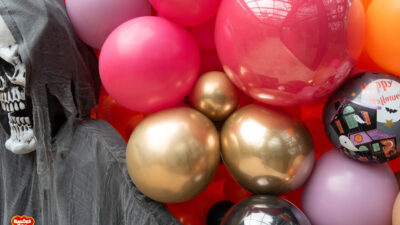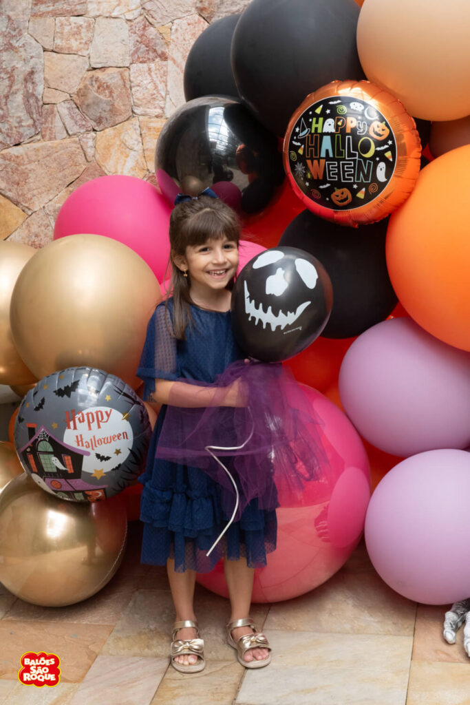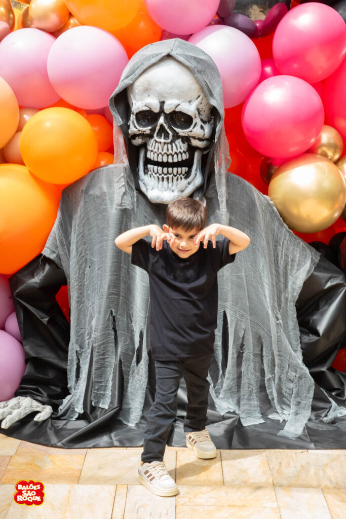 O mural orgânico, criado com a combinação dos Lisos Redondos, Metallic Balloons, Uniq, Balão Bolha e Metalizados Redondos, forma um cenário impactante, que une texturas e contrastes para transformar o ambiente em uma verdadeira experiência visual da data mais assustadora do ano.