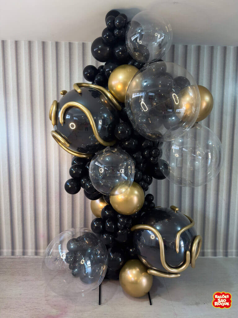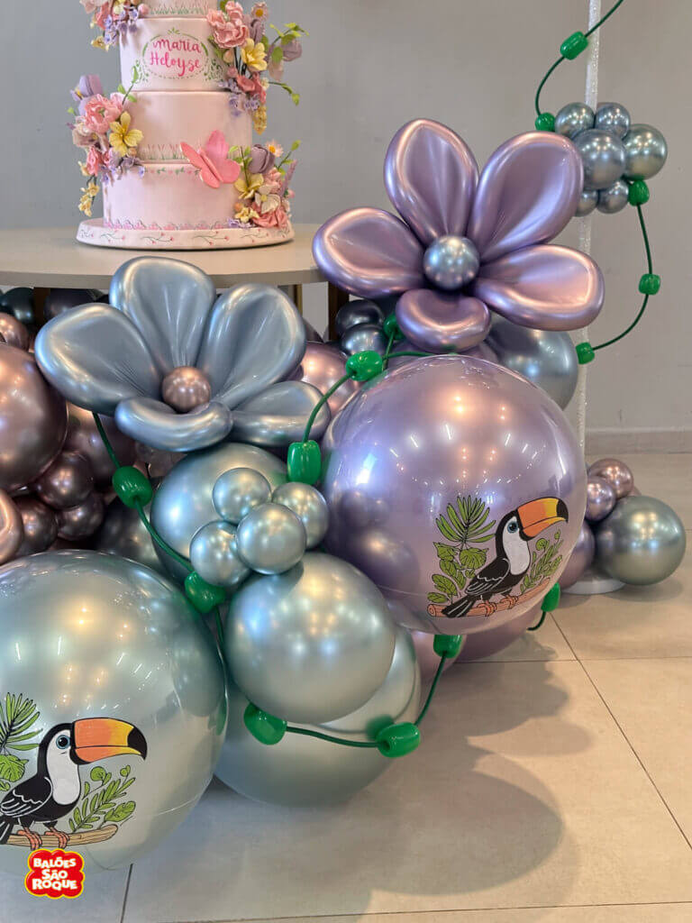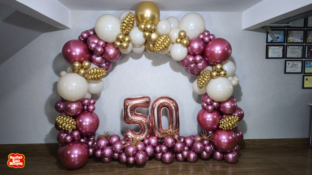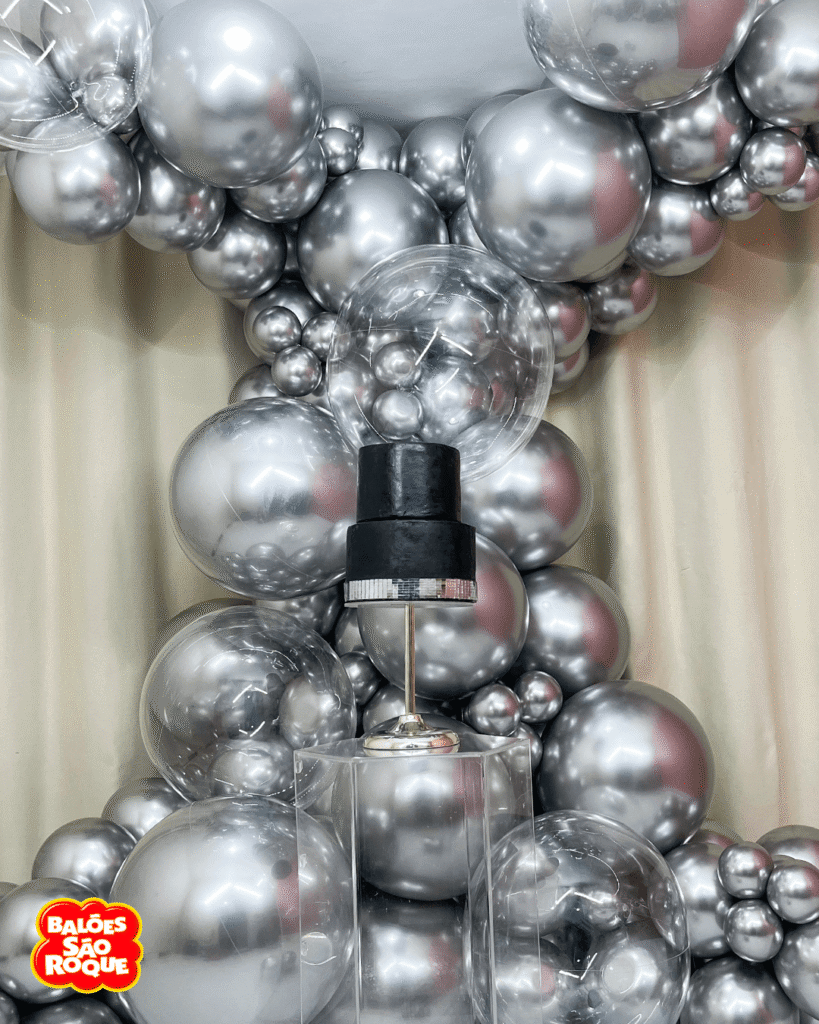 Os Metallic Balloons podem ser aplicados em arcos orgânicos, painéis, arranjos, e esculturas, agregando valor à decoração de festas como casamentos, aniversários e eventos corporativos.